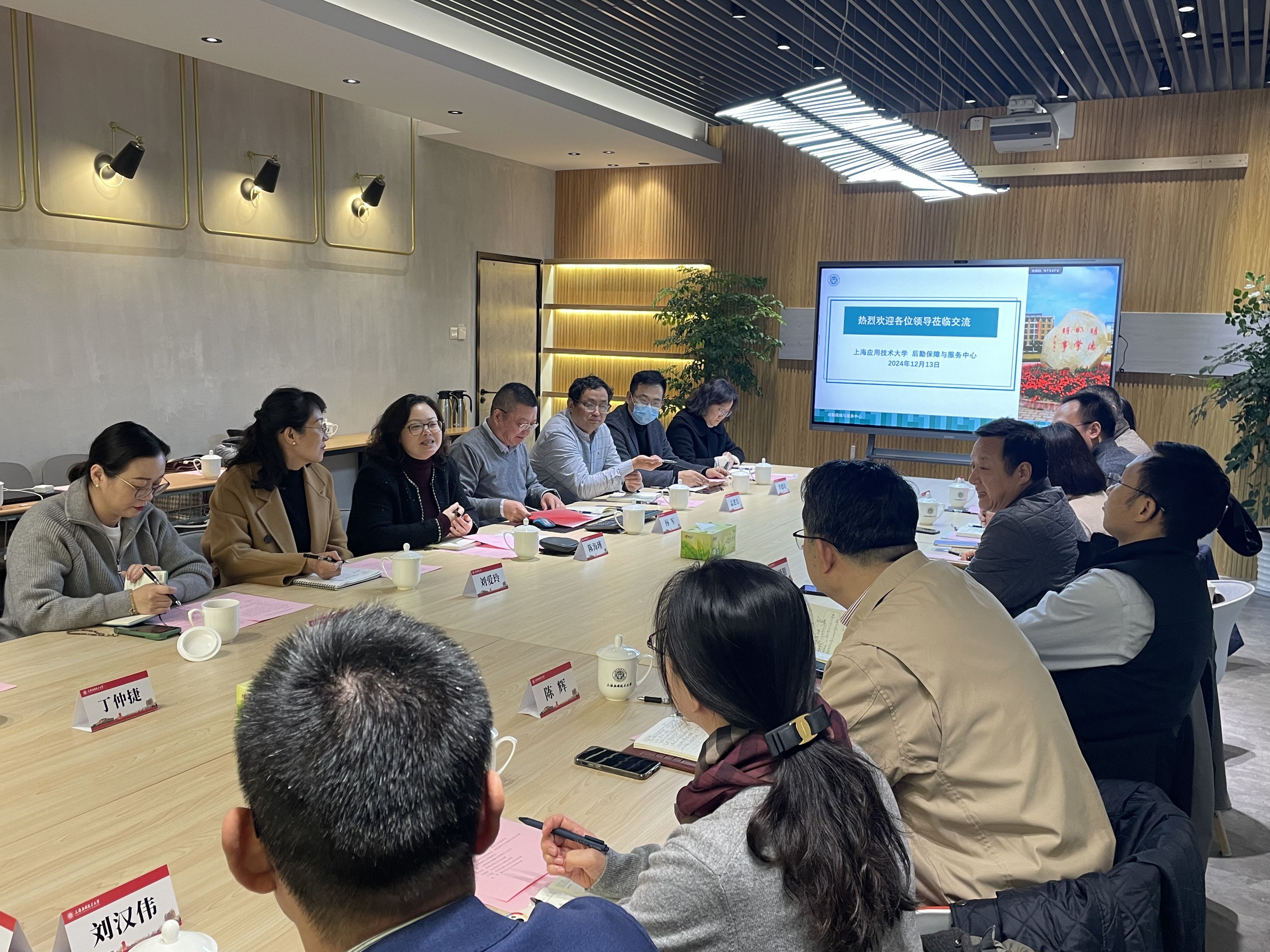 12月13日,学校党委副书记陈海瑾接待了上海市教委后勤保卫处、上海锦江集团高校后勤公司一行来访。市教委后勤保卫处处长贺小虎、副处长毛岚,锦江集团副总裁沙德银、高校后勤公司董事长、党委书记陈辉等出席本次活动。