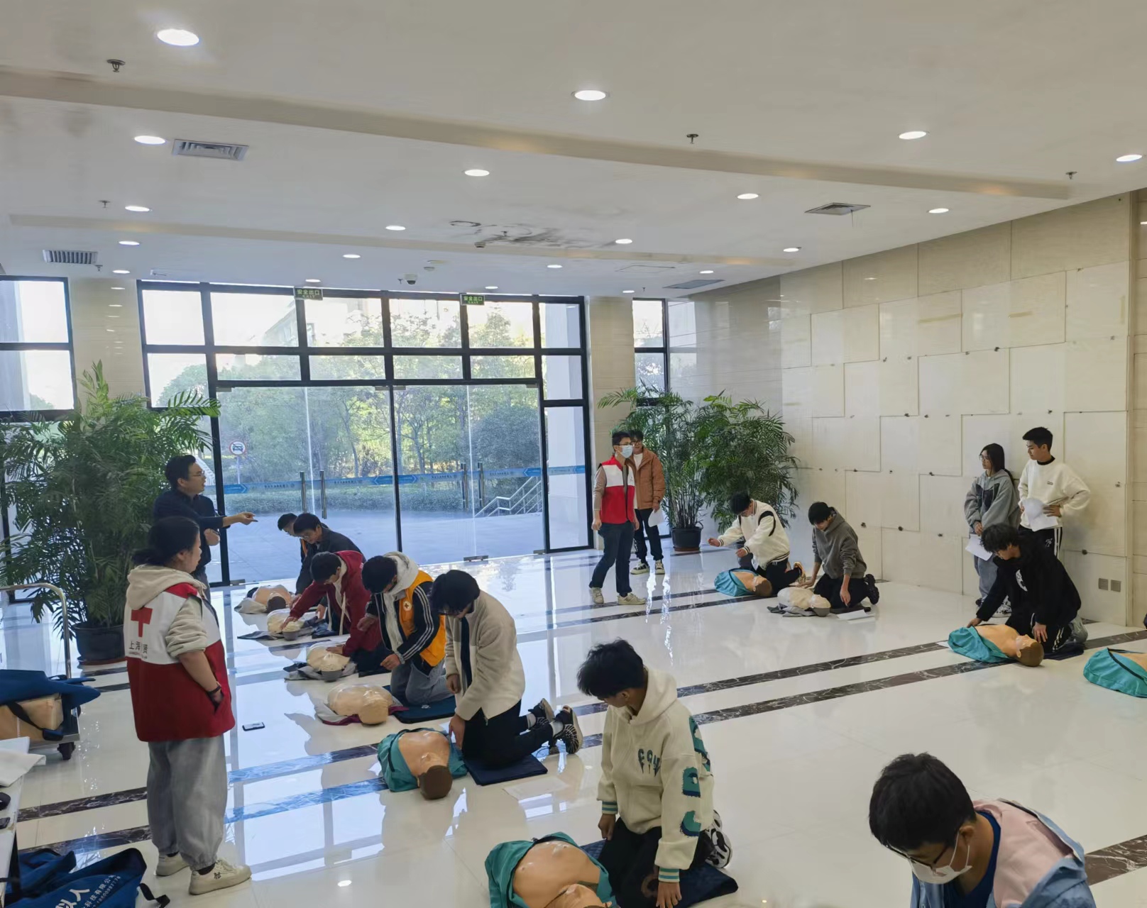 2023年11月18日,学校红十字会邀请上海市红十字会、徐汇区康健街道红十字会专业师资团队,共同在奉贤校区图书馆B102举办了上海市救护员技能培训。