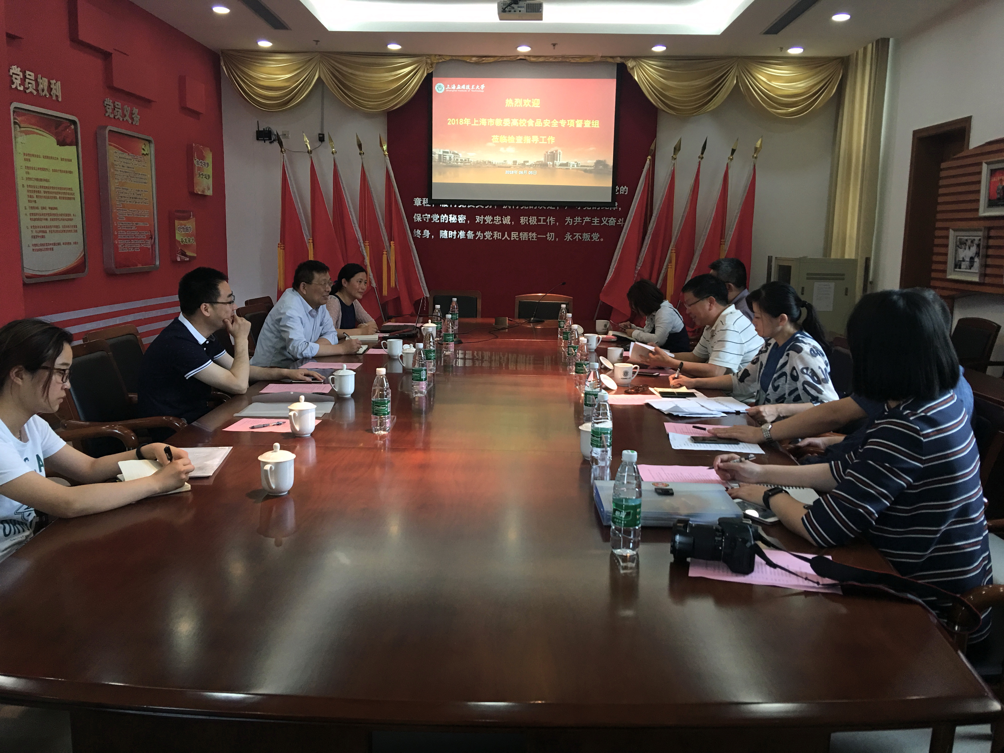 本次上海高校食品安全专项督查是根据《上海市教育委员会关于做好2018年高校食品安全工作的通知》(沪教委后【2018】3号)文件精神开展的。后勤保障处副处长张勤向督查组汇报了2017-2018年度我校在完善食堂规章制度、考评管理制度;加强食堂食品安全监管、食品卫生巡查等方面的工作。