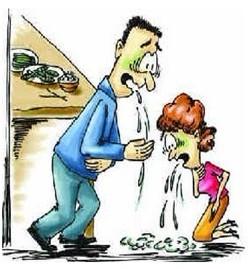 2.进食短期内出现急性胃肠症状,如恶心,频繁性呕吐,腹痛、腹泻。同时进餐者有类似症状。重者可发生高热、脱水、昏迷、抽搐,很快死亡。